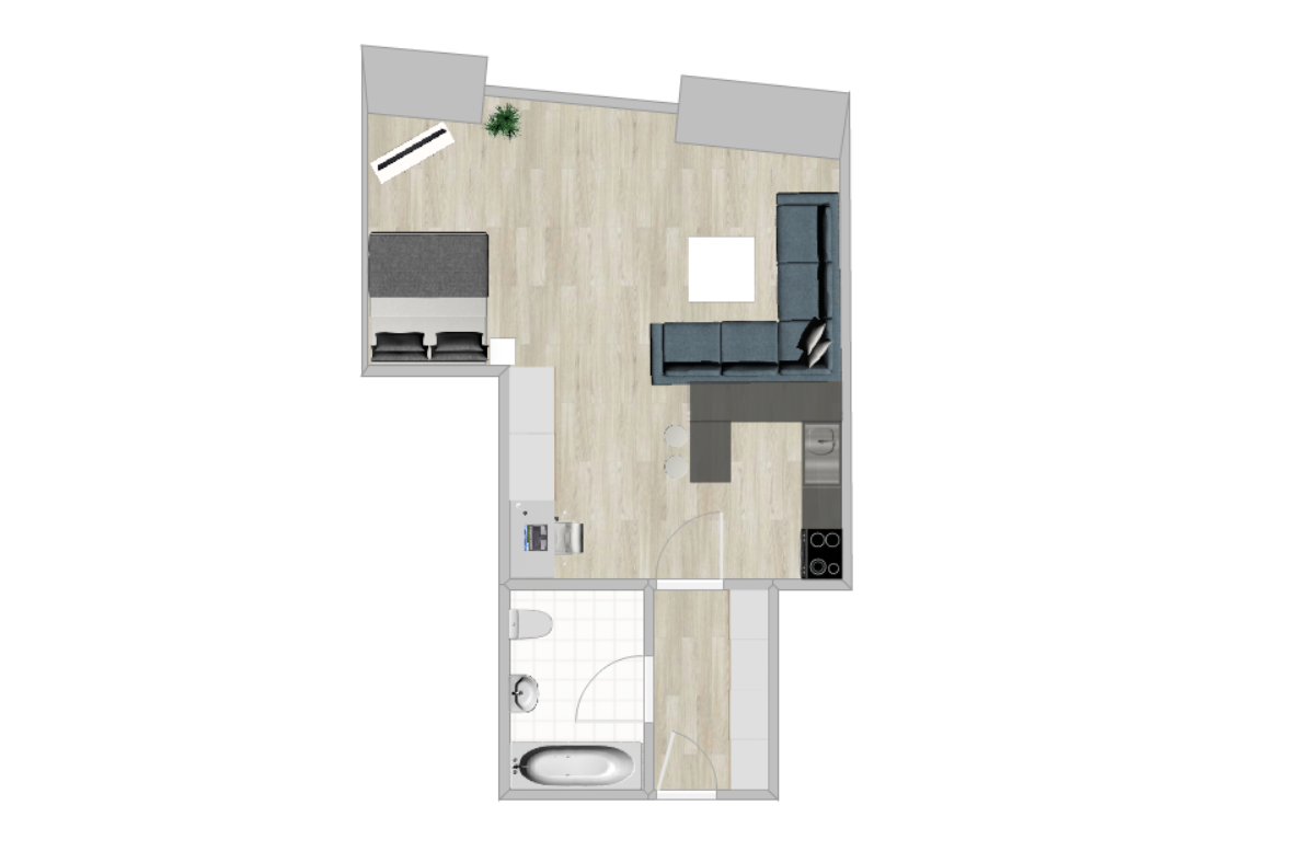 Dusche, EBK, Elektroherd, Rauchmelder, WC